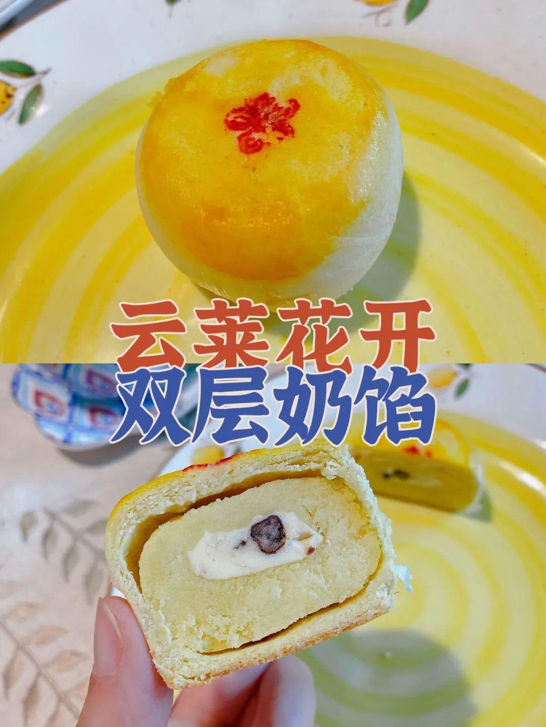 层层叠叠的松饼,包裹着双层奶馅和整颗煮糯的红豆